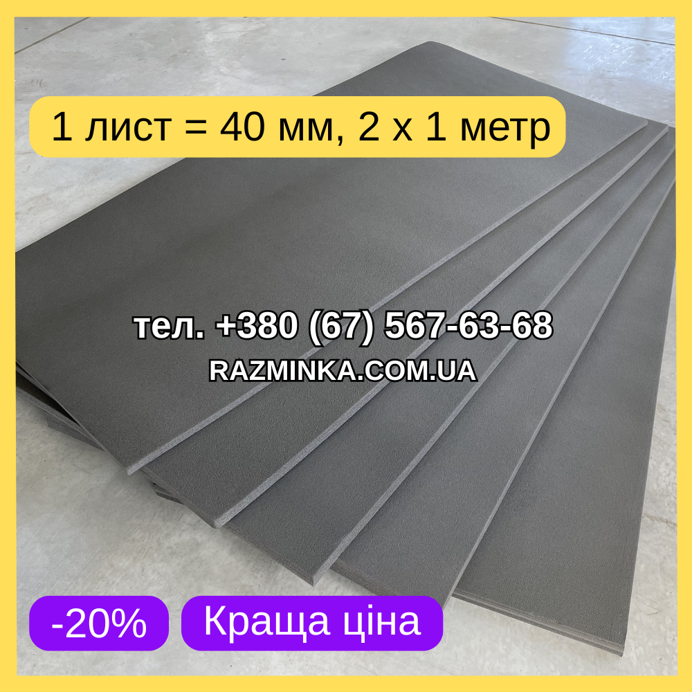 - Матеріал: ППЕ НХ (хімічно зшитий пінополіетилен) з щільністю аналогічною поролону в діапазоні 140-160 кг/м³.